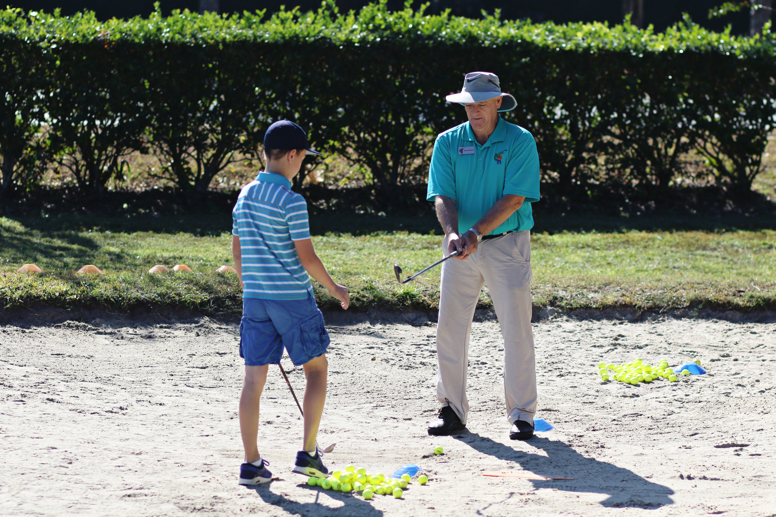 We use an incremental approach to learn the major skills in golf, studying smaller swings (putting and chipping) before the longer swings (half/full swing), and understanding the differences between them. Following our weekly lesson, we apply skills with fun games and competitions.